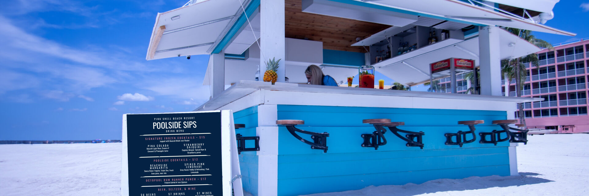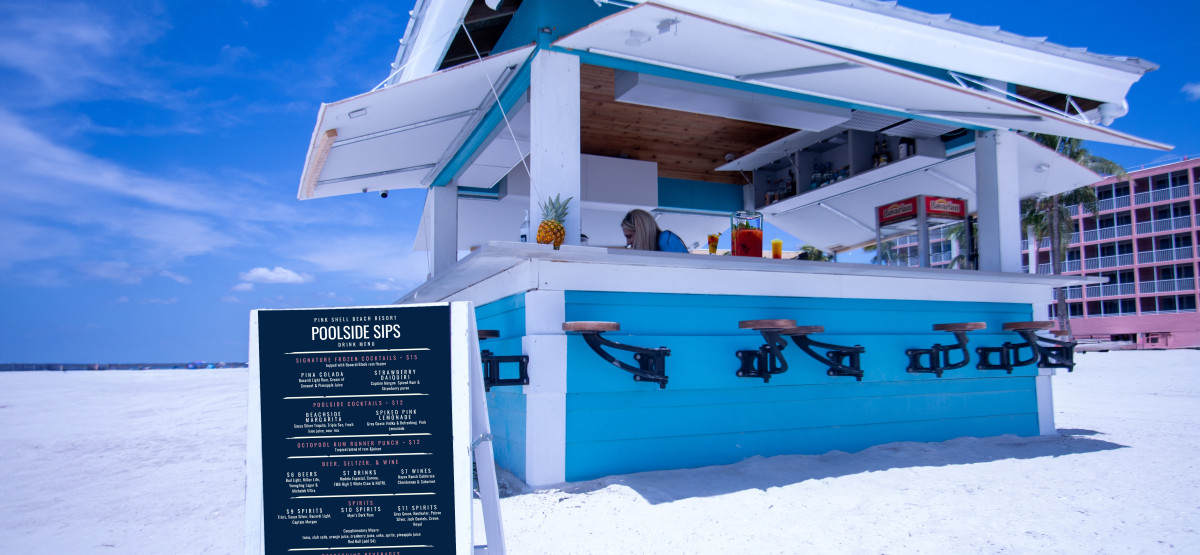 Find Bob’s Beach Bar right on Pink Shell’s private beach